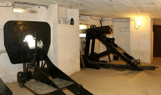 Links Hotchkiss- und rechts Grabengeschütz Mle 1858 |