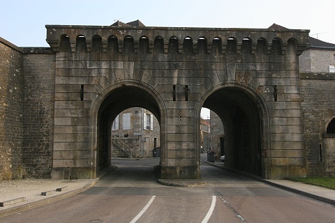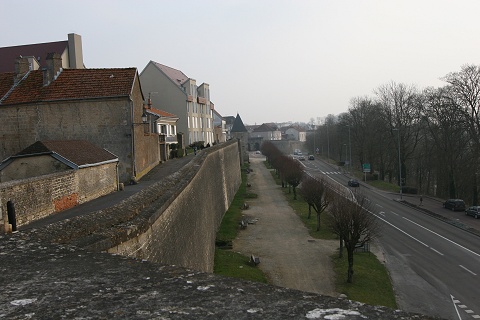 Auf der nach Westen hin sich ausdehnenden Hochebene sind folgende Forts angelegt: am meisten nach Süden das Fort la Bonnelle, dann in der Mitte die Lünette und Fort Buzon, nach Norden die Batterie Brivoines und am meisten nordwärts gelegenen Vorsprung Fort und Redoute Pointe-du-Diamant. Die Mehrzahl der Befestigungen ist zur Sicherung der Eisenbahnen angelegt, doch dienen sie zugleich auch der Bestreichung des Vorlandes. Neuerdings sind auch die Werke zweiter Ordnung Perrancey und Croix d’Arles im Osten erbaut und der Teil der Stadtumwallung zwischen der linken Face des Bastions 3 und dem Türmchen 5 aufgegeben worden."