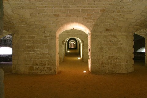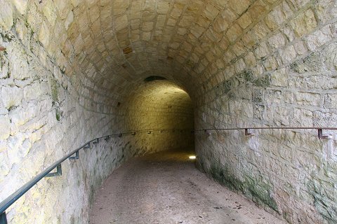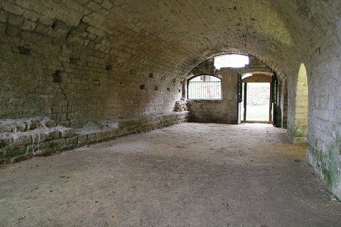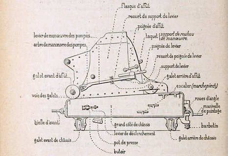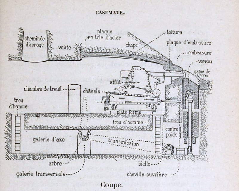 Schnittzeichnung der Kasematte Mougin Quelle: Ministère de Guerre "Règlement sur le service des canons de 155 long sur affuts de tourelle et de casemates" 1892 |