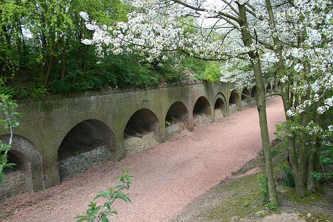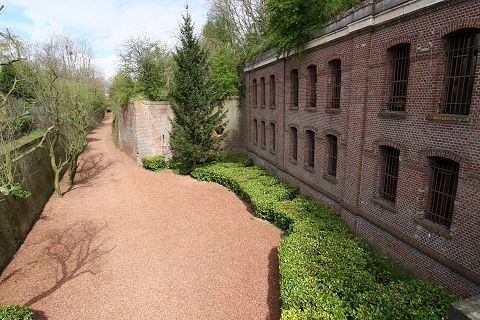 Geschützwall mit Hohltraversen heute als Garten hergerichtet |