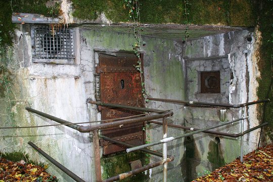 Panzertür und Nahverteidigungsscharte des östlichen Eingangsbunker |