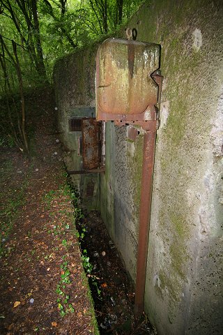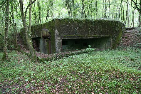 Bei diesem CORF-Bunker handelt es sich um eine einfache nach Osten flankierende Kasematte. Sie wurde von CORF gebaut, dem ursprünglichen Typ "alte Front" (Mle 1929), leicht erkennbar an der geneigten FM-Scharte zur Verteidigung des Grabens (daher die fehlenden Granattröhren). Die Kasematte flankierte Richtung Artilleriewerk Kobenbusch.