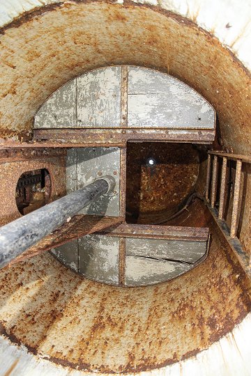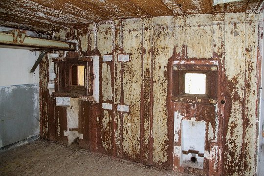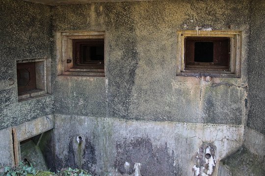 CORF-Kasematte alter Bauart mit zwei Stockwerken, die links (Richtung Westen)