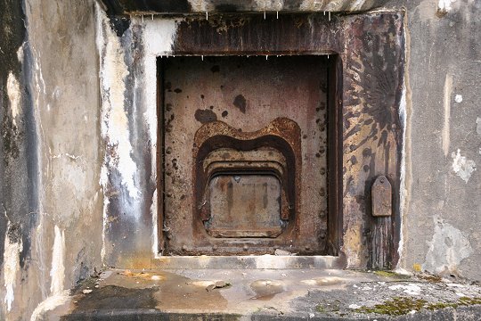 Ostwerk Bloc 5: Durch Beton verschlossene Granatwerferscharte |