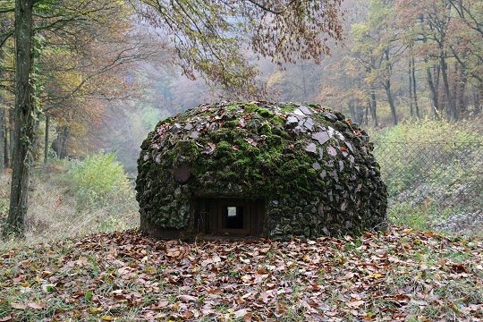 Grabenstreiche Bloc 22: GFM-Kuppel mit Tarnung aus Steinen |