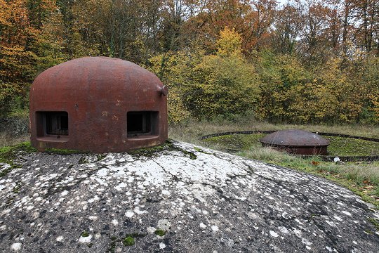das Zwischenwerk Wald von Koenigsmacker mit Flankierungsfeuer zur Werkgruppe Billig, zwischen Werkgruppe Metrich und Dorf Koenigsmacker | |