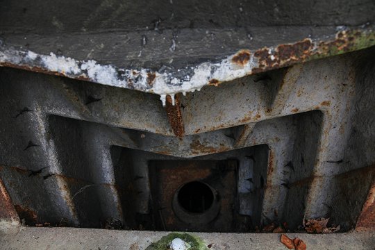 Block 11: GFM-Kuppel mit reparierten Schäden durch Hohlladungen |