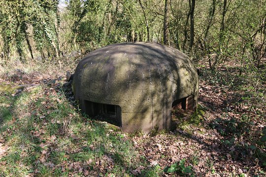 Eingangsblock: Zwei GFM-Panzerglocken Typ A für MG FM24/29 oder 50 mm Granatwerfer und eine Scharte für das das Zwillings-MG Reibel MAC 31 oder austauschbar eine 47 mm PaK. |