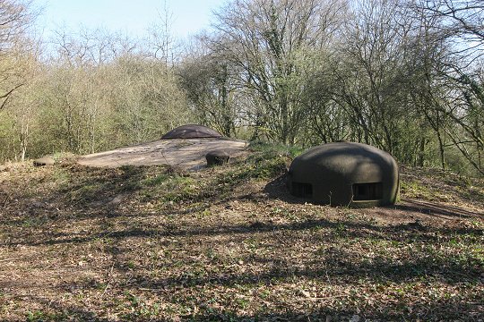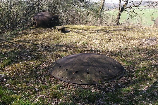 Block 1: Ein MG-Panzerturm, eine GFM-Panzerglocke Typ A für MG FM24/29 oder 50 mm Granatwerfer, eine Panzerglocke für das Zwillings-MG Reibel MAC 31. | |