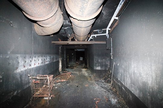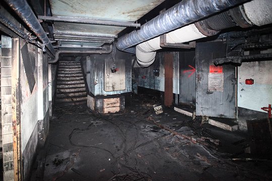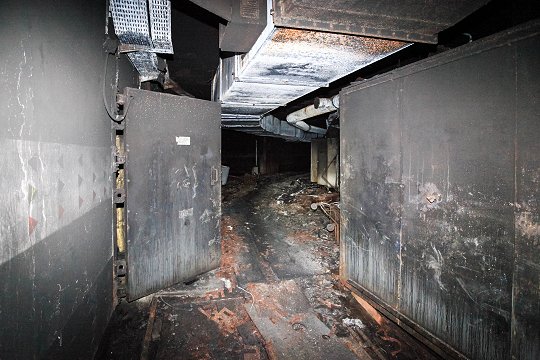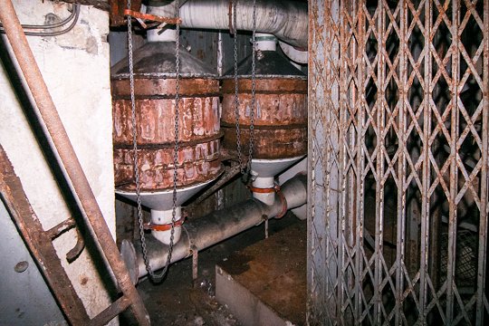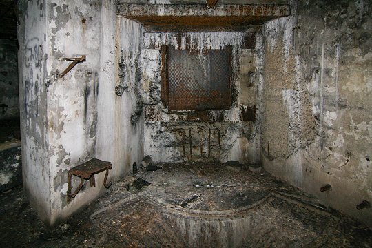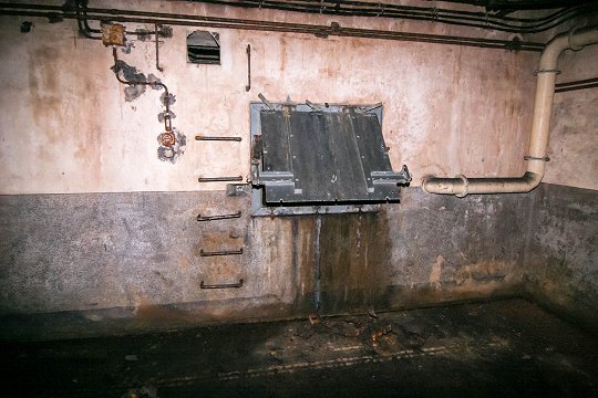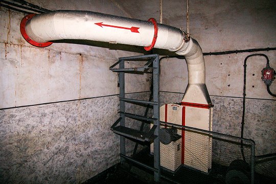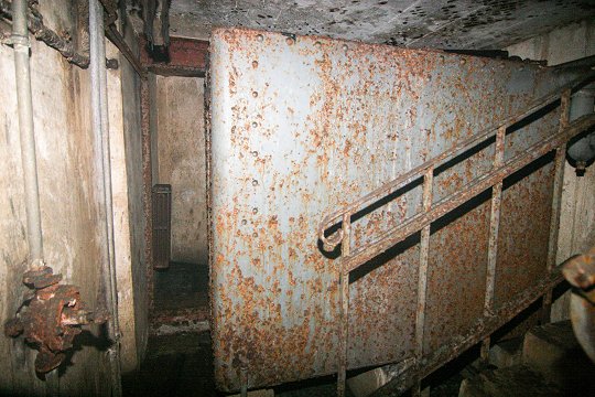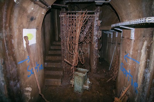 Block 9: Munitionsaufzug und Treppenschacht mit Sand verfüllt |
