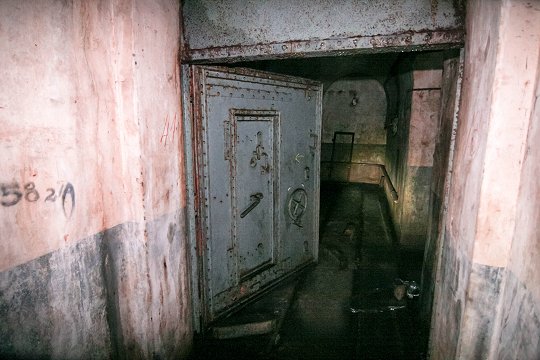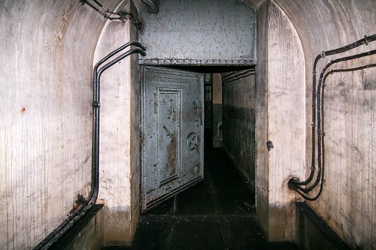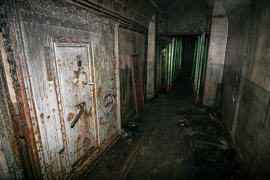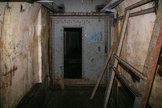 Block 2: Sicht vom Kampfblock zum Hohlgang mit den doppelten Panzertüren |