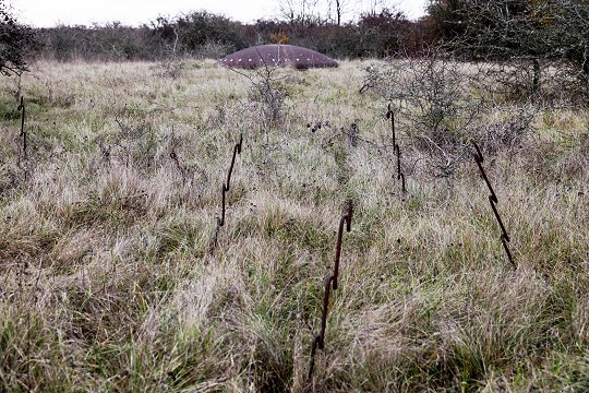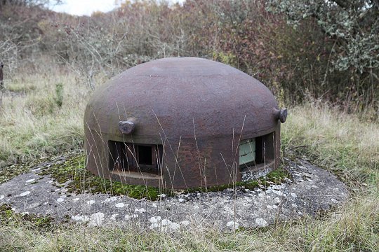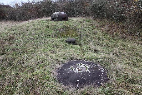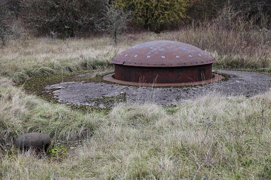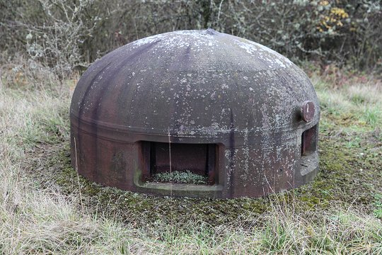 Block 8: Infanteriekasematte mit einer Scharte für ein Zwillings-MG Reibel MAC 31, einer Scharte für ein Zwillings-MG Reibel MAC 31 oder einer 37 mm PaK austauschbar, einem MG-Panzerturm und zwei GFM-Panzerglocken Typ A für ein MG 24/29 und/oder einem 50 mm Granatwerfer. | |