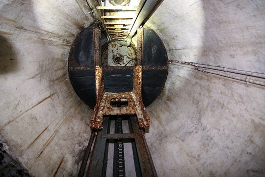 Block 2: Munitionsaufzug im Obergeschoß des Kampfblocks |