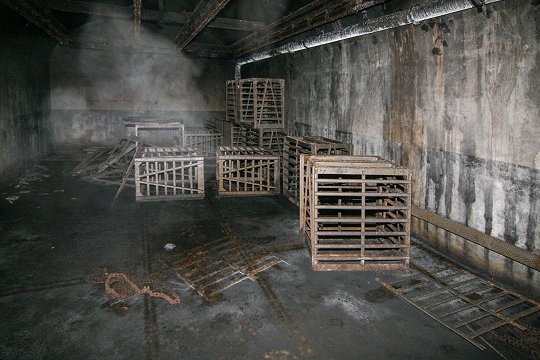 wurden von den Wänden entfernt und auf ehemaligen Bettgestellen verbrannt, um