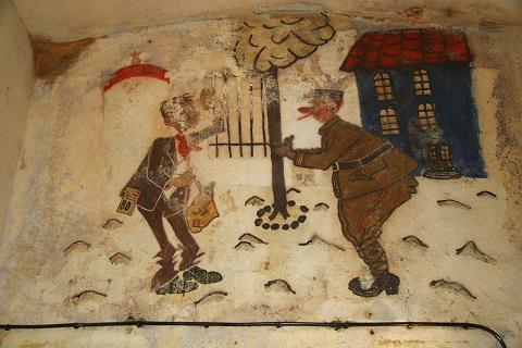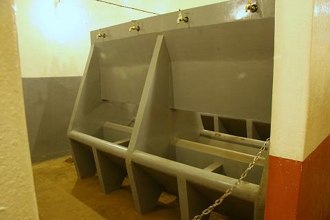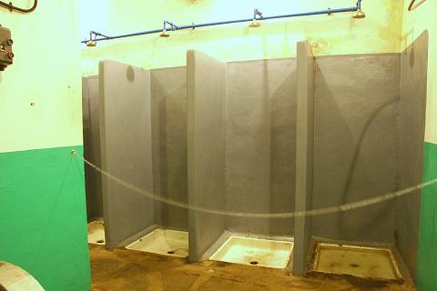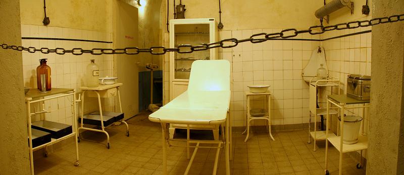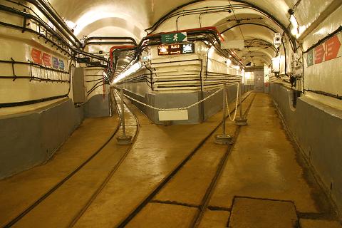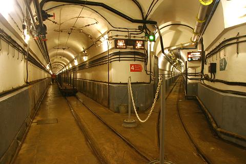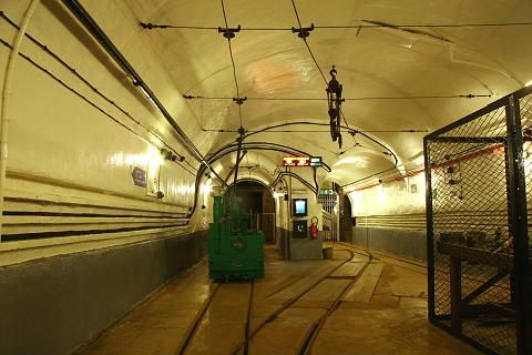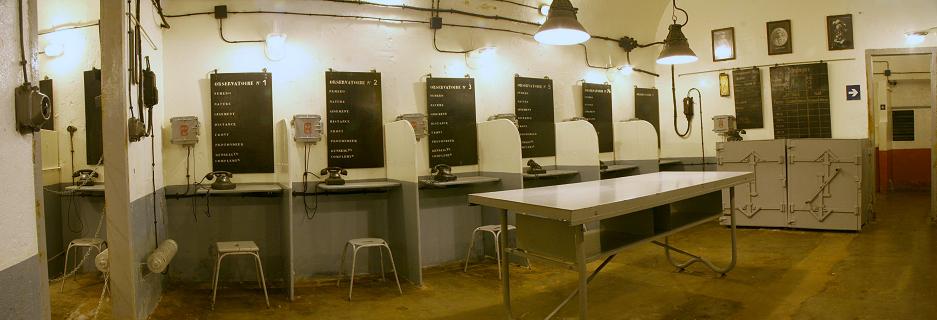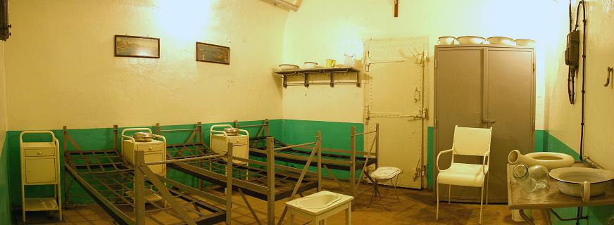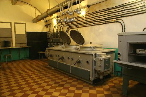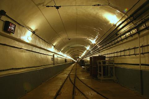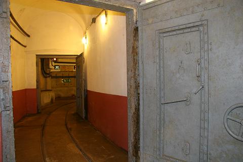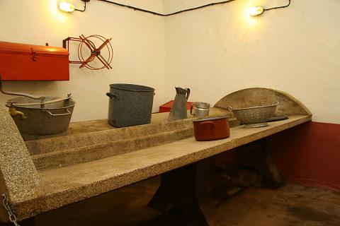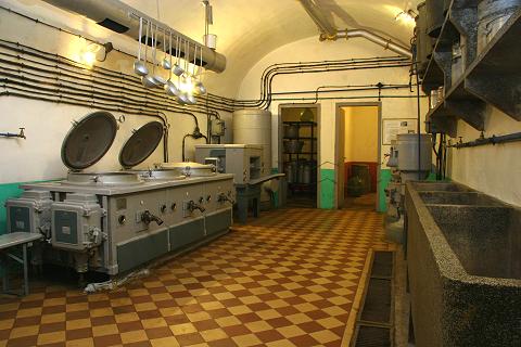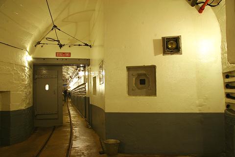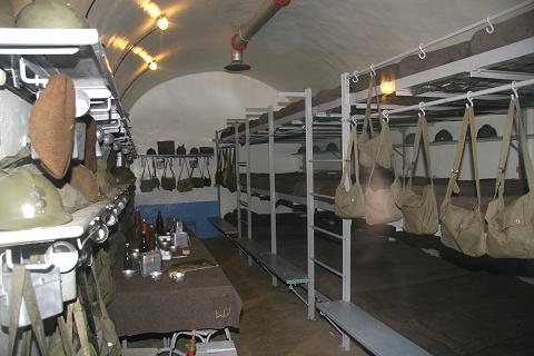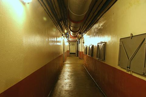 Hohlgang im Kasernenbereich mit Klapptischen |