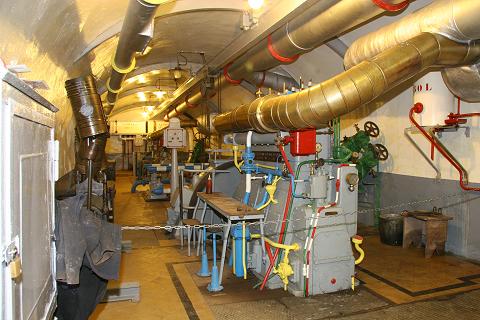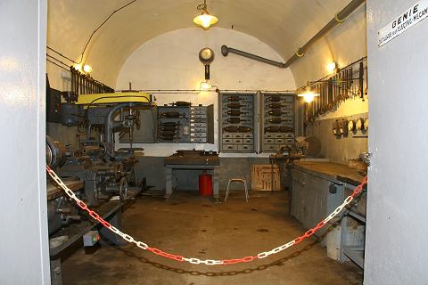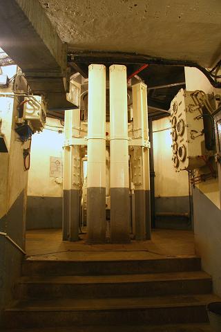 Unterstockwerk des Geschützturms mit Versenkmechanismus |