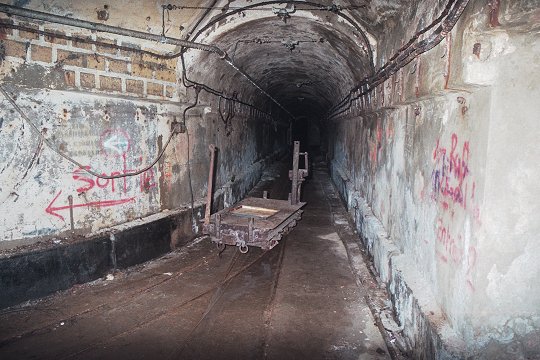 Ehemalige Lore im Hohlgang |