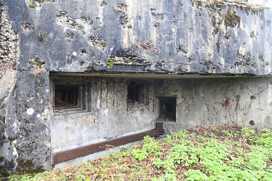 Sicht von Kasematte Hummersberg Süd auf die Kampfblöcke 9 und 7 des Ouvrage de Hackenberg |