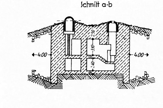 Die Beobachtung aus ständigen Anlagen wird durch vorgeschobene splittersichere B-Stellen sowie durch die Beobachtung der offen eingesetzten Artillerie ergänzt. An splittersicheren Anlagen sind Betonkuppeln, schwachwandige Panzerstahlkästen und kleinere Betonstände festgestellt.