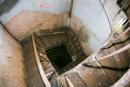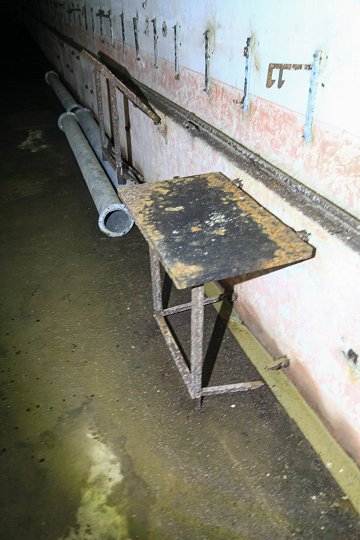 Block 4: Links Treppe zur Beobachtungsglocke, rechts Mechanik für das Periskop |