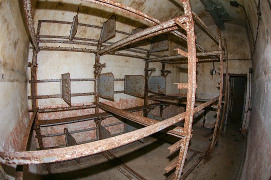 Kaserne: Unterkunftskasematte mit Bettgestellen |
