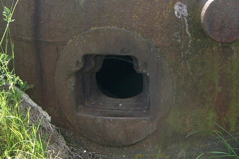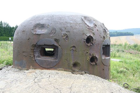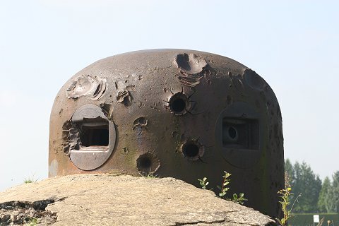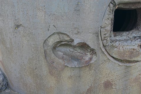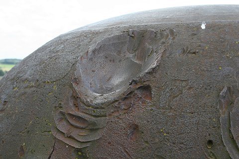 Treffer einer 8,8cm Granate, die den Stahl nicht durchschlug. |