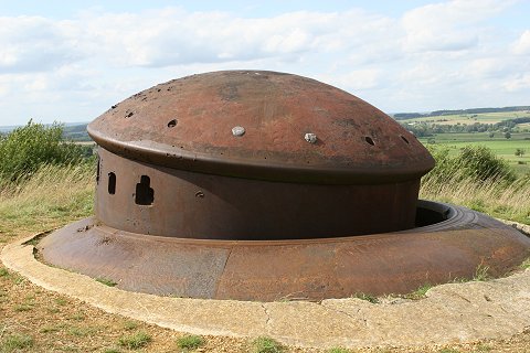Der Versenkturm. Im Hintergrund die Ortschaft Fromy, von der die 8,8cm feuerte. |