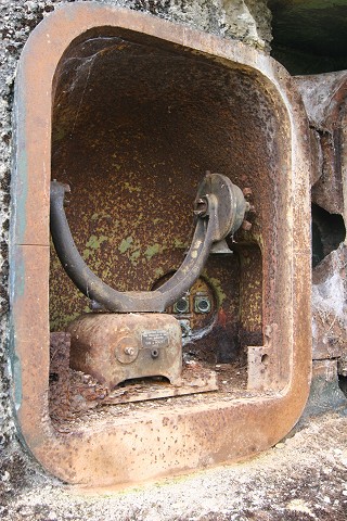 Der geöffnete Festungsscheinwerfer: die Lampe fehlt. |