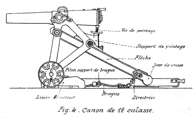 Canon de 12 culasse in der Grabenwehr Quelle: Capitaine d'Artillerie Leroy: "Historique et Organisation de l'Artillerie" Cours d'Artillerie 1922 |