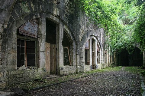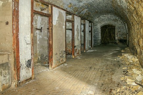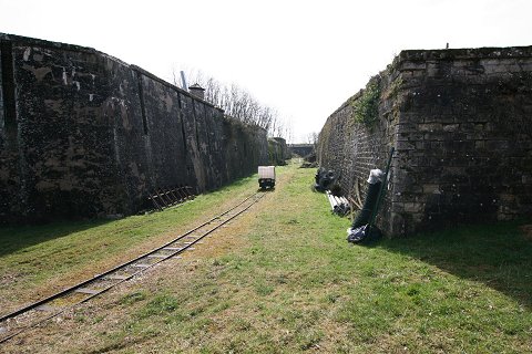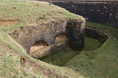 Traverse, rechts Betonnische für Bereitschaftsmunition |