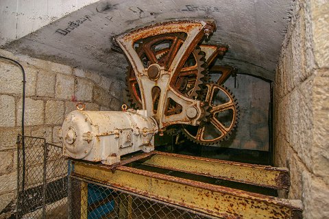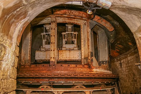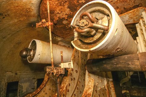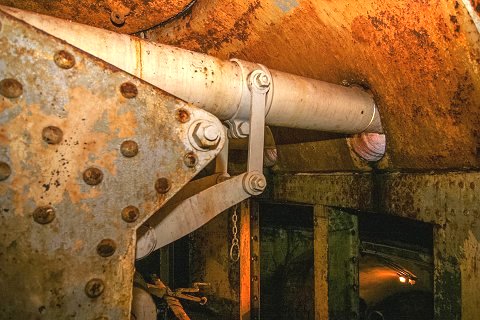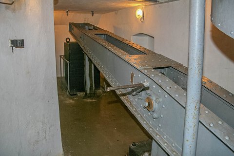 Hebelarm mit Gegenwicht zum Ein- und Ausfahren des Panzerturms |