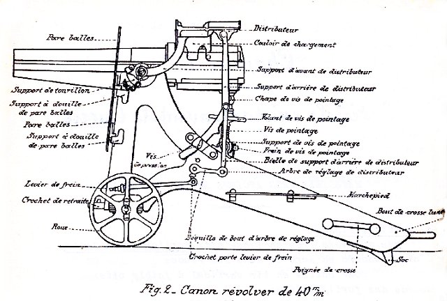 Die 40mm Revolverkanone Hotchkiss Quelle: Capitaine d'Artillerie Leroy "Historique et Organisation l'Artillerie" Cours d'Artillerie 1922 |