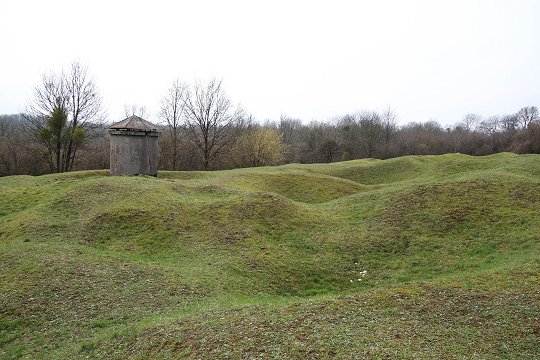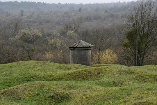 Der Abschnittsunterstand Abri 320 liegt unterhalb des Beinhauses von Douaumont und wurde von den Deutschen irrtümlich M-Raum 372 (Munitionsraum) genannt. Er wurde zwischen 1889 und 1894 aus Bruchsteinmauerwerk in den Felshang gebaut und war für 300 sitzende Soldaten konzipiert. Im Abstand von 30 m befinden sich zwei getrennte Eingänge und zwei Lüftungsschächte. Zwei Treppengänge von ca. 15,00 m Länge führten in den Unterstand, der ungefähr acht Meter unter der Erde lag und als Beschußsicher galt. Eine bauliche Besonderheit ist die doppelte Mauer und Decke in der Unterstandsröhre. Einige Zentimeter abgesetzt von der dicken Außenmauer aus Bruchsteinmauerwerk, hat man eine Ziegelmauer hochgezogen. Diese diente dem Feuchtigkeitsschutz und der Luftzirkulation. Der Abschnittsunterstand war von Drahthindernissen und Laufgräben umgeben. Es existierten vor Verdun insgesamt drei dieser Anlagen in den Festungsbereichen Froideterre, Douaumont und Sartelles-Chana.
