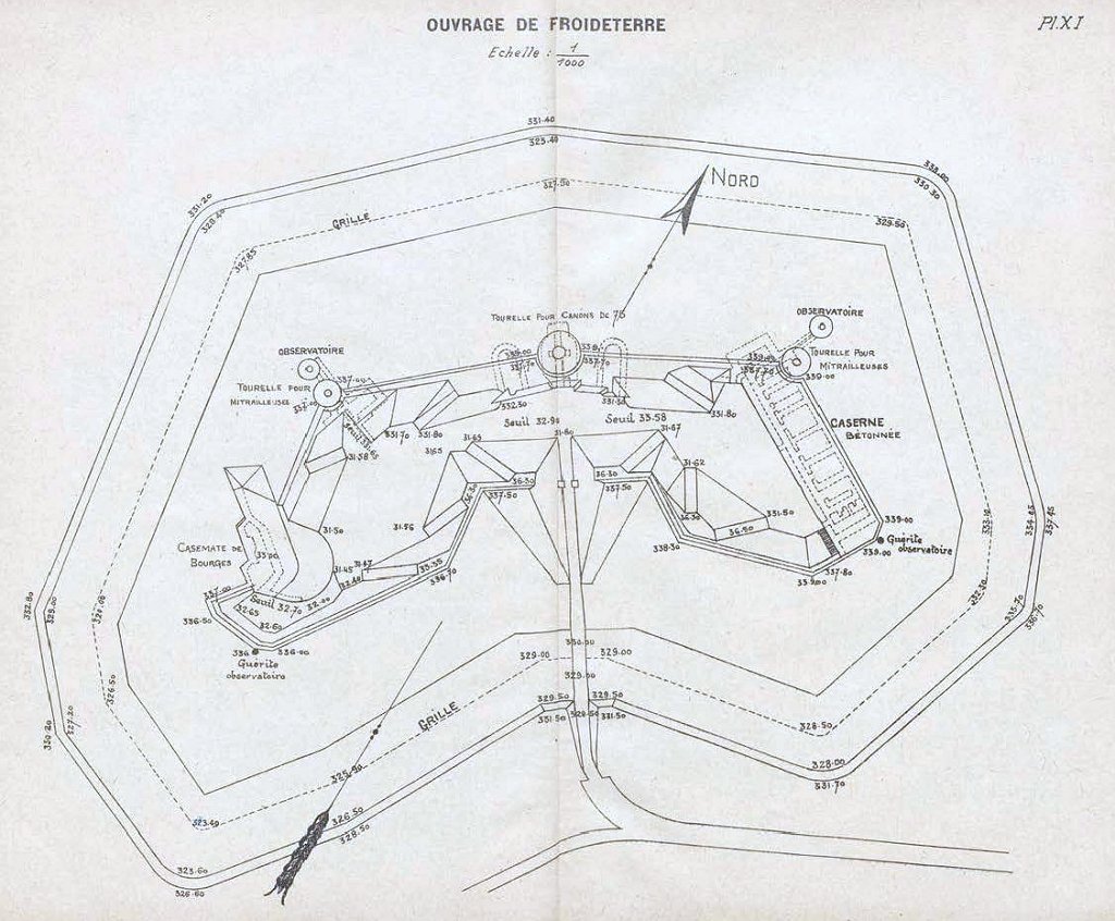 Das Zwischenwerk Froideterre (Kalte Erde) wurde in den Jahren 1887 – 1888 auf einem 300 m hohen Hügel des Höhenzuges gebaut, der sich von Froideterre bis zum Fort Douaumont zieht. Es handelte sich zunächst um ein kleines Zwischenerk für 40 Mann, welches zunächst aus Bruchsteinen errichtet wurde. Da die Position des Werkes von herausragender Bedeutung war, wurde es im Zeitraum von 1900 – 1914 grundlegend umgebaut und modernisiert. So wurden: