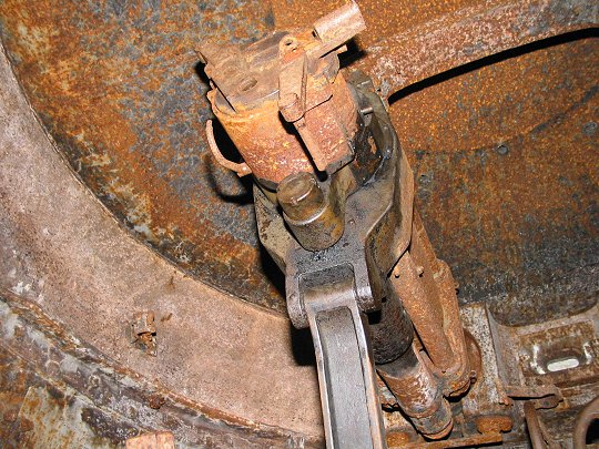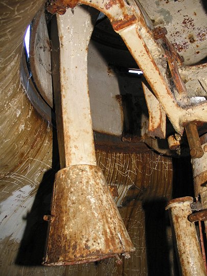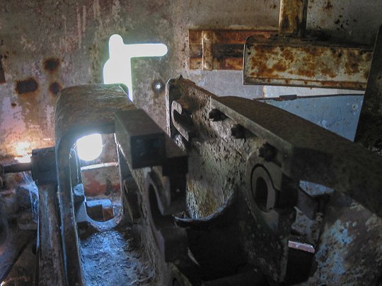 den Beschuß zerstört. Da sich der östliche MG-Turm verklemmt hatte, konnte sich
