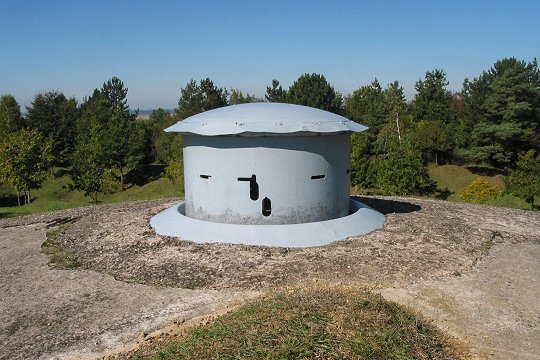 1902 – 1904 Einbau der drei Panzerbeobachter vom Typ Digoin, Einbau eines zweiten MG-Panzerturmes und Bau des Gebäudes für einen Panzerturm Mod. 05 für zwei 75 mm Geschütze. |