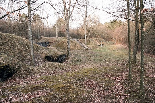 Im Festungsbereich Verdun gab es bis zum Ausbruch des 1. Weltkrieges 116 Batterien mit insgesamt 384 Geschützen. Nicht nur die Festungen, sondern auch zwischen den Forts waren Batterien aufgestellt. In offenen Stellungen - jedoch von Erdwällen umgeben - standen die Geschütze auf massiven Plattformen. Für die Bedienungsmannschaften gab es 9,60m lange und 1,50 m breite betonierte Stollen. Als Befehlsstelle diente ein geräumiger Kommandobunker.