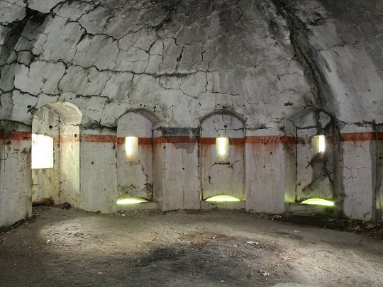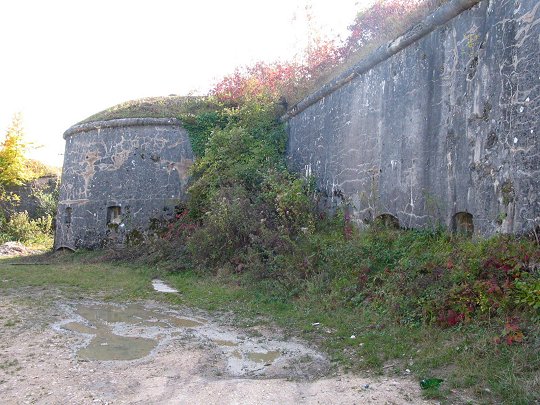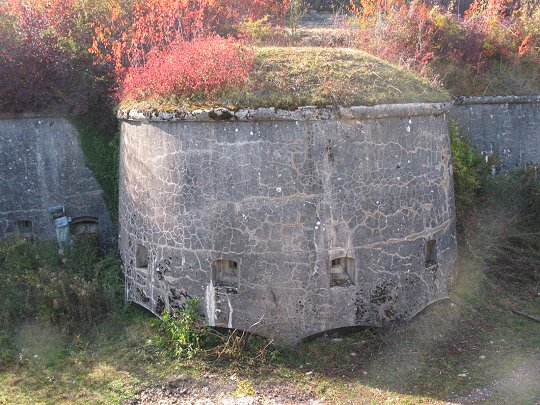 1905-1907 legte man die beiden Zwischenraumstreichen vom Typ Casemate Bourges an, die jeweils zwei 7,5cm Geschütze aufnehmen konnten. Zugleich schützte man das Fort durch Hindernisgitter und Drahtsperren. Weiterhin wurden zwei gepanzerte MG-Türme mit Beobachtungsglocken vom Typ Digoin eingebaut. |