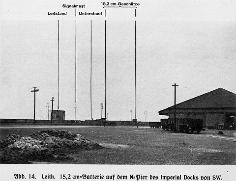 Lage: Nordostecke des Imperial Docks. Bewaffnung: zwei 15,2 cm Geschütze. Die