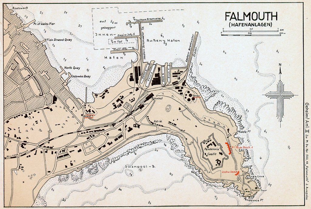 Quelle: Marinedienstvorschrift M.Dv. 502/13: "England - Flottenstützpunkte und Häfen - Falmouth" Oberkommando der Kriegsmarine; 3. Abteilung Seekriegsleitung 1940 |