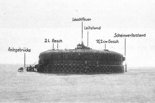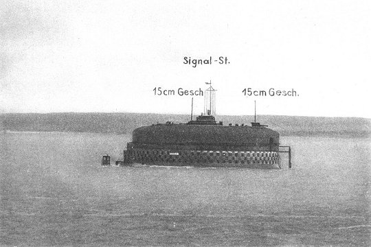 Auch wenn nicht z.Zt. alle Einzelheiten der Bewaffnung feststehen, so muß doch in erster Linie mit der Verwendung der Panzertürme zur Abwehr von Luft- und Schnellbootsangriffen gerechnet werden. Eine Flakbewaffnung dürfte im Mobfalle auf allen 4 Werken mit Sicherheit vorhanden sein. Bei der großen Rolle, die das Luftmeldesystem für die Küstenverteidigung spielt, dürfte den Panzertürmen im Verein mit dem Nab Tower noch eine besondere Aufgabe als Scheinwerfer- und Horchstationen zufallen. Ähnliche Überlegungen gelten für die U-Bootsabwehr. Ausserdem kommt die Verwendung der Türme als Stützpunkte für die Sperrverteidigung in Betracht.