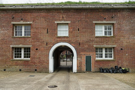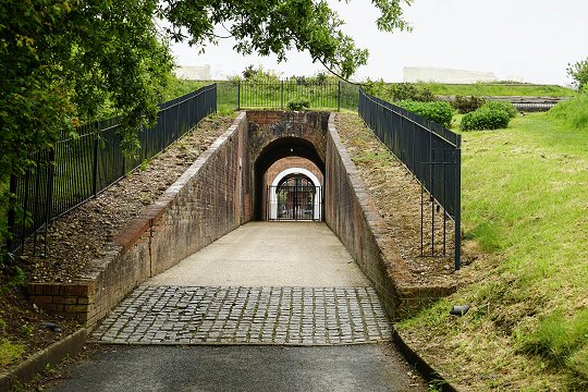 Grabenstreichen flankiert. Der Eingang zum Werk erfolgt durch einen Tunnel im