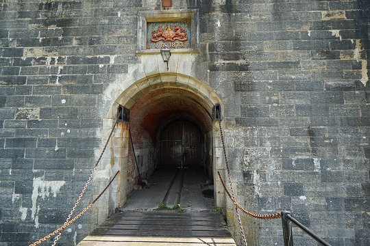 Links und Bildmitte Zugang zum Hauptmagazin, rechts Zugang zum Tudor-Castle |