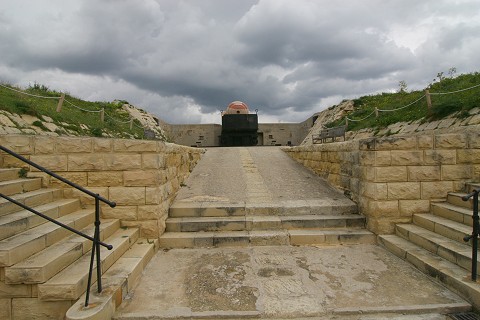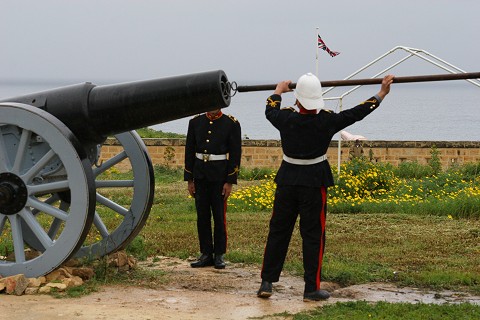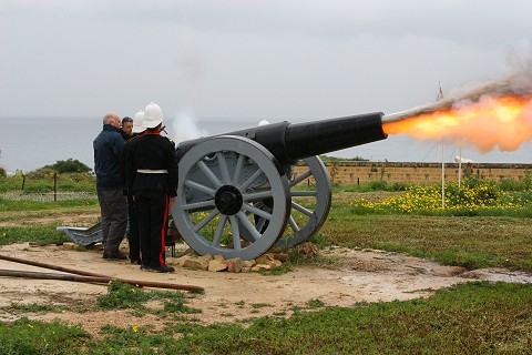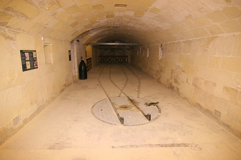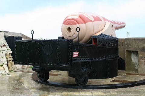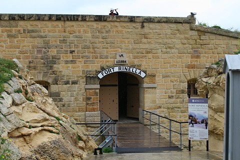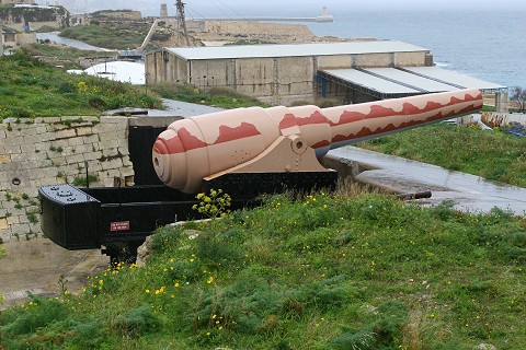 1877 inspizierte General Lintorn britische Festungen im Mittelmeerraum und stellte eine signifikante Unterlegenheit der vorhandenen britischen Festungen auf Gibraltar und Malta fest. Die Reichweite und das Kaliber dieser Festungen war zu gering, als das diese Geschütze in der Lage waren einen italienischen Angriff wirksam abzuwehren. Daher beschloß man, auf Gibraltar und Malta jeweils zwei der 100to Geschütze aufzustellen. Auf Malta waren dies Fort Cambridge und Fort Rinella. Rinella wurde zwischen 1884 und 1886 gebaut. Als einzige Bewaffnung diente das 100to Geschütz mit einem Kaliber von 450mm. Dabei handelt es sich um einen Vorderlader mit einer Rohrlänge von fast 10m. Um das Geschütz zu beladen gab es zwei Ladetürme, aus denen mittels hydraulischem Ansetzer der Kartuschbeutel und die Granate in den Vorderlader geschoben wurde. Die Hydraulikanlage wurde durch eine Dampfmaschine betrieben.