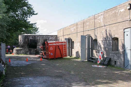 Das Fort bij Markenbinnen wurde in den Jahren 1890 bis 1892 zunächst als reines Erdwerk gebaut und bekam 1897 den Status eines Festungswerkes erster Klasse. 1904 entstand dann die betonierte Kaserne und im Jahre 1908 die beiden Nebenbatterien. Das Fort befindet sich im Markenpolder und hatte die Aufgabe die Verkehrswege im Markenpolder zu schützen. Hierfür stand eine Besatzung von 282 Mann zur Verfügung, davon 5 Offiziere und 12 Unteroffiziere. Die Bewaffnung bestand aus vier 10 cm Geschützen und zwei 6 cm Kanonen in den Kehlkasematten, sowie zwei 6 cm Kanonen in versenkbaren Panzertürmen. Die Kehlkaserne besitzt 27 Kasematten, wovon einige durch eingezogene Zwischenwände in separate Räume verwandelt wurden. Die Poterne verbindet die Kehlkaserne und das Hofgebäude miteinander. Das Hofgebäude besitzt 7 Räume, wovon das Wachlokal den Zugang zur Beobachtungspanzerkuppel besitzt. Von den beiden Nebenbatterien existiert heute nur noch die Ostbatterie, während die Westbatterie sehr früh geschleift wurde.