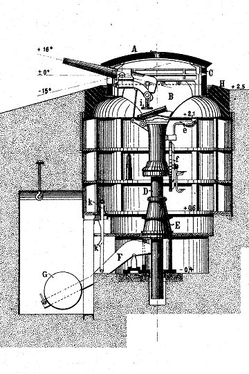 Der Panzerturm für 6cm Kanone Quelle: Gruson "Hartguss-Panzerungen und Minimalscharten-Lafetten" 1890 |