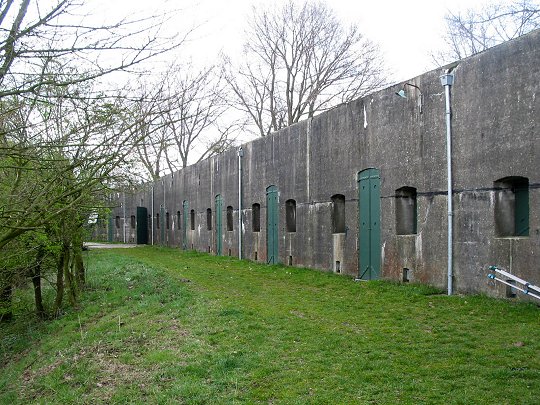 Kehlseite des Forts. Nigtevegt besteht aus drei Gebäudeteilen: einer betonierten