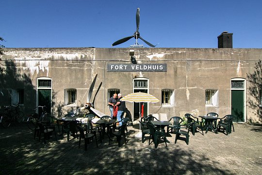 Das Fort bij Veldhuis wurde zwischen 1893 und 1895 zunächst als Erdwerk angelegt. 1897 bekam es den Status eines Festungswerks erster Klasse, was zwischen 1897 und 1899 zum Bau der bombensicheren Gebäude führte. Neben dem Fort bij Vijfhuizen ist es das älteste Festungswerk im Festungsgürtel von Amsterdam und besteht aus unverstärktem Beton. Südwestlich vom Fort befindet sich noch eine Nebenbatterie. Das Fort liegt im Hemskerkerbroek Polder und hatte die Aufgabe die umgebenden Strassen und die Schleuse für die Überflutung zu schützen. Hierfür stand im Mobilisierungsfall eine Besatzung von 340 Mannschaften, 16 Unteroffiziere und 9 Offiziere zur Verfügung. Die Bewaffnung bestand aus vier 10 cm Kasemattgeschützen, zwei 6 cm Kanonen in versenkbarer Panzerkuppel und acht Maschinengewehren.