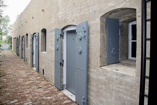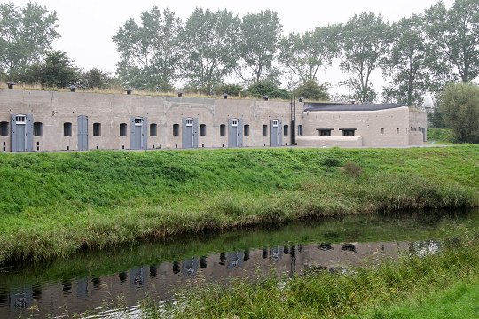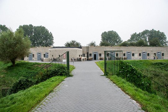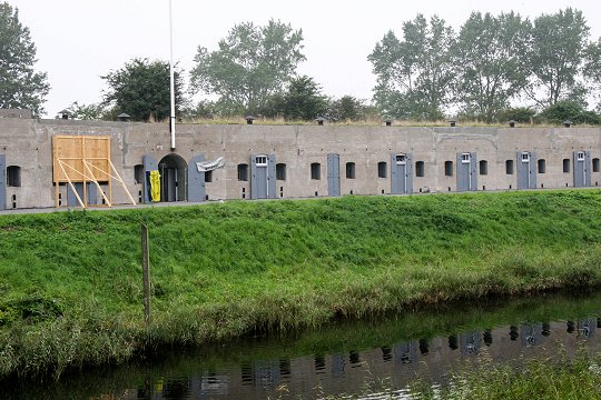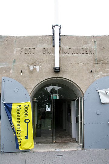 Das Fort bij Vijfhuizen wurde zwischen 1889 und 1890 zunächst als Erdwerk errichtet. Dabei kam der Sand, aus denen die Wälle bestanden, aus dem Schleusenbau von Ijmuiden. 1897 wurde die Anlage als Festungswerk 1. Ordnung klassifiziert, so dass es zwischen 1897 und 1899 betoniert wurde. Das Fort konnte 295 Mann aufnehmen; davon fünf Offiziere, 16 Unteroffiziere und 272 Mannschaften. Als Bewaffnung dienten vier 12 cm Geschütze, zwei 6 cm Kanonen in versenkbarer Panzerdrehkuppel und vier Maschinengewehre. Das Fort hatte die Aufgabe den Harlemmermeerpolder und den Ringdeich zu schützen. In der Nähe des Forts befindet sich noch eine Artilleriestellung im Deich (Geniedijk). Nach dem 2. Weltkrieg wurde das Fort 1951 deklassifiziert und diente bis 1980 dem Kampfmittelräumdienst als Ort für die Delaborierung. Danach stand es lange Zeit leer. Zwischen 2004 und 2005 wurde es vollständig renoviert, restauriert und umgebaut. Heute dient es als "Kunstfort bij Vijfhuizen" verschiedenen Künstlern als Zentrum für aktuelle Kunst.
