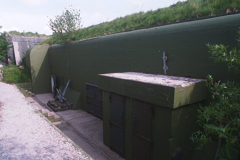 Die Flak-Unterstellräume sind 5x5 m groß und für 3 Fla-MG ausreichend. Die Kampfstände auf dem Abschlussdamm hatten 2 Eingänge bzw. einen Eingang und einen Notausgang. Beide liegen in der Rückwand des Bauwerkes. Diese Eingänge sind gebrochen geführt, Verteidigung durch Gewehrscharte in der gegenüberliegenden Wand. Vor dem Eingang ist außen eine Gittertür angeordnet, durch die von der Gewehrscharte in der Zwischenwand aus hindurchgeschossen werden kann. Die innenliegende Panzertür ist gegen Beschuß gedeckt. Die Notausgänge dieser Bauwerke sind Stollen von 60x60 cm lichter Weite, innen mit einer Panzertür verschlossen, sonst offen. Sie münden in den betonierten Umgang nach der Eingangsseite zu.